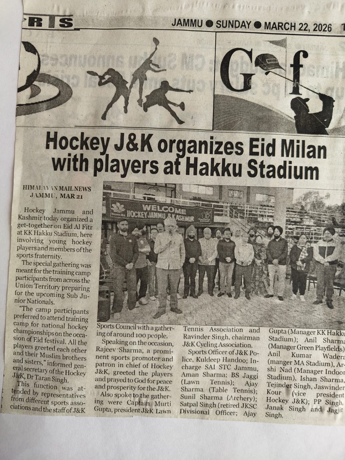 Elections of Hockey J & K were held, Mr. Gurdeep Singh elected President under Hockey India and J&K Sports Council observation.