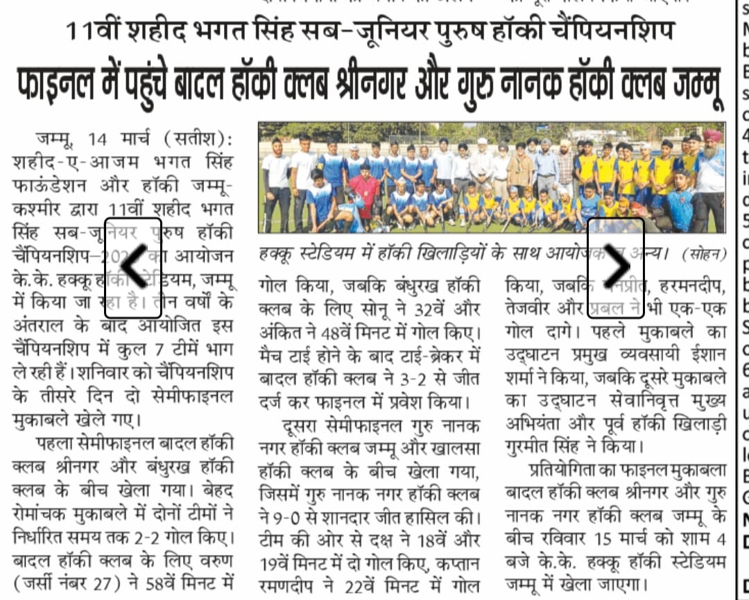 Badal Hockey Club Srinagar and Guru Nanak Hockey Club Reach the Final .