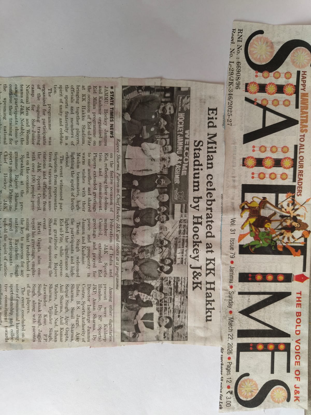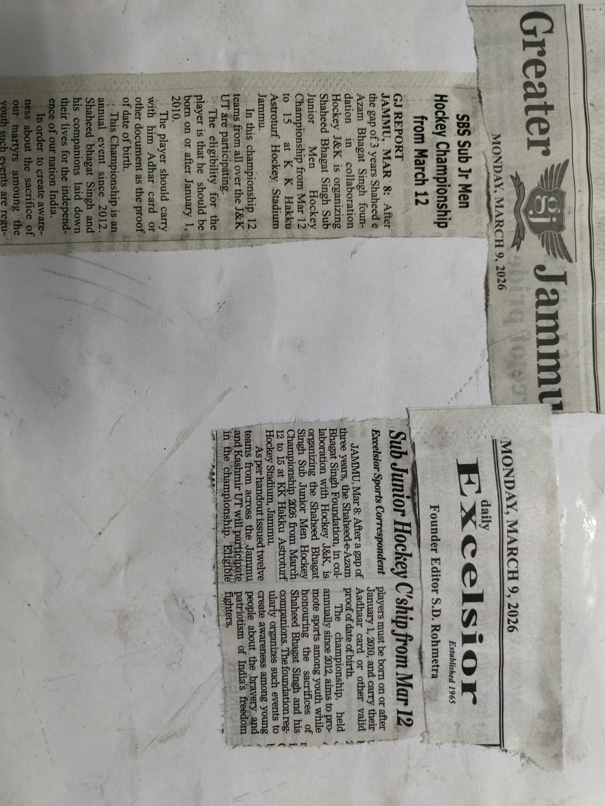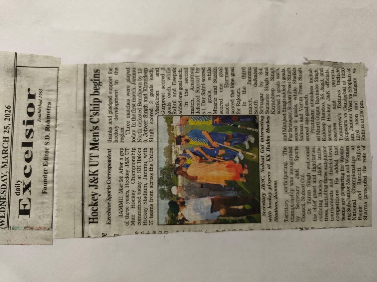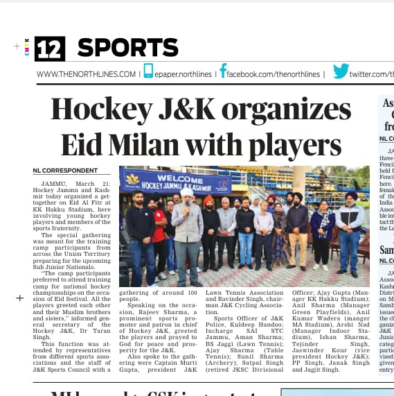 Media coverage for program held in Jammu under Hockey J & K led by Sh. Gurdeep Singh.