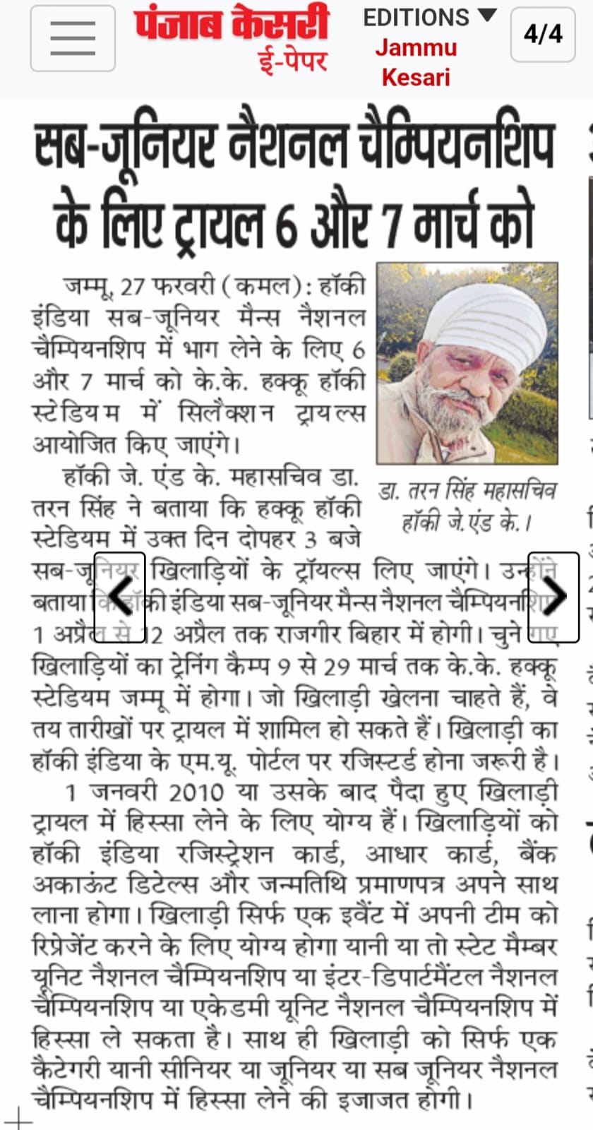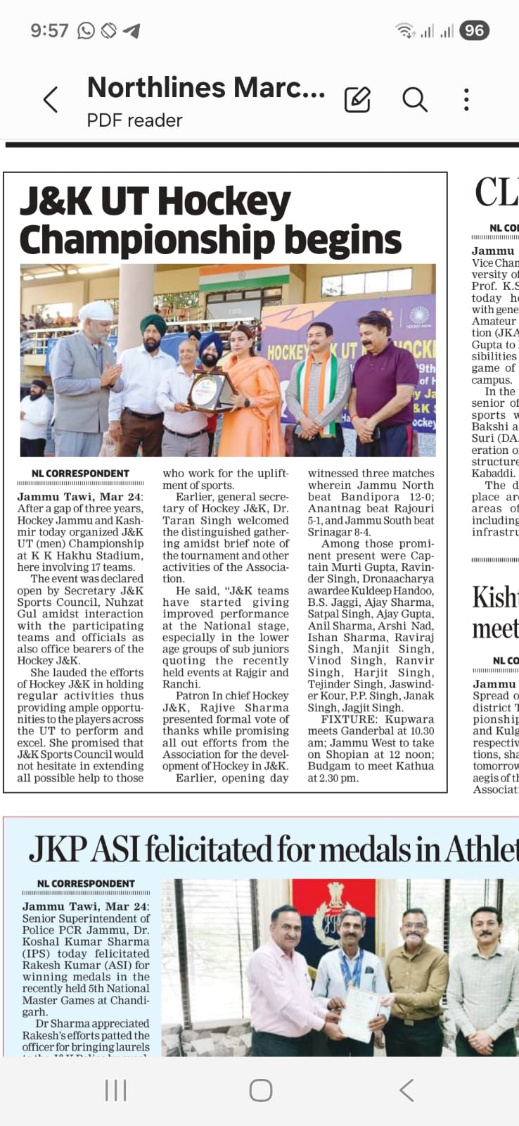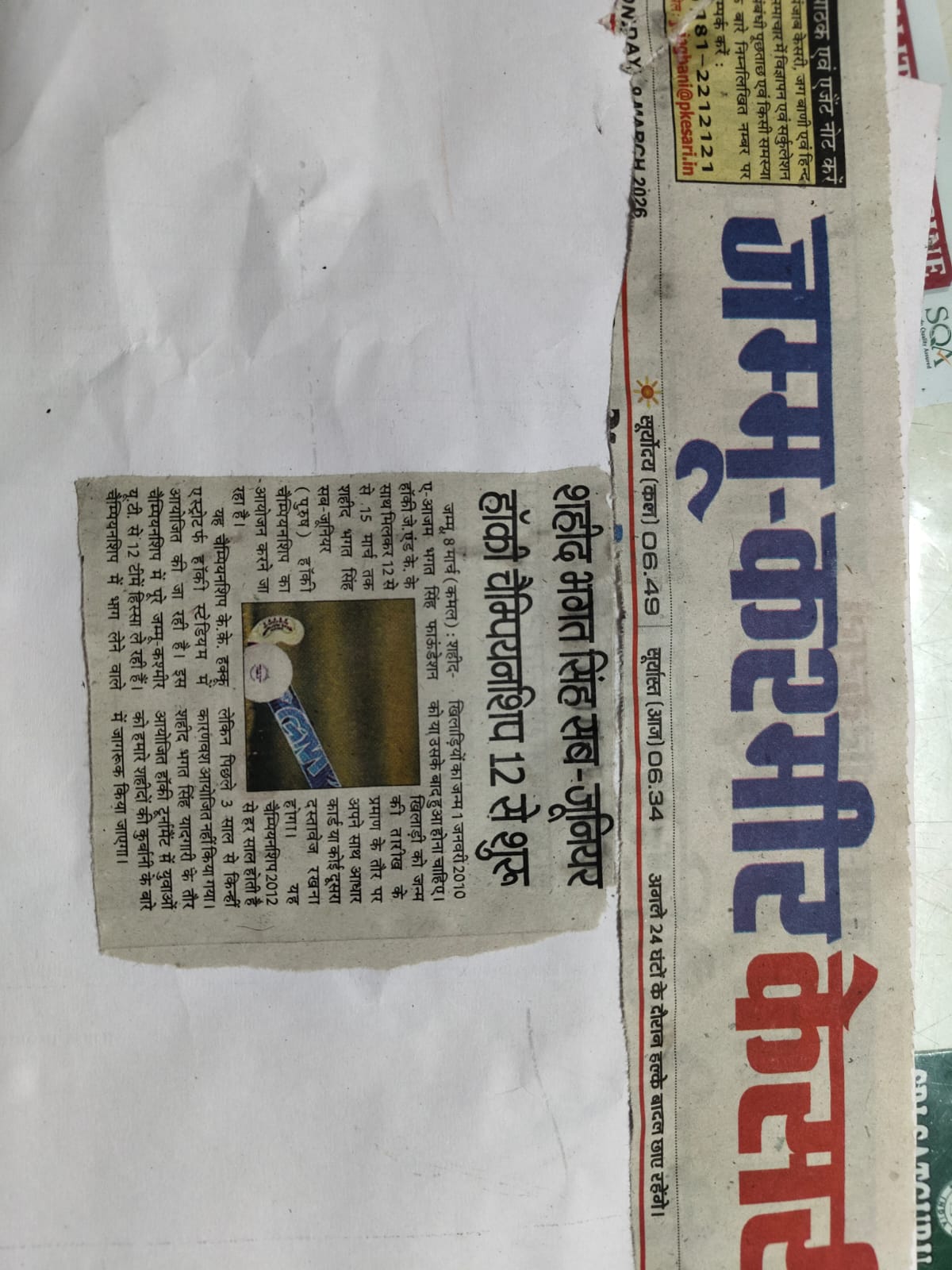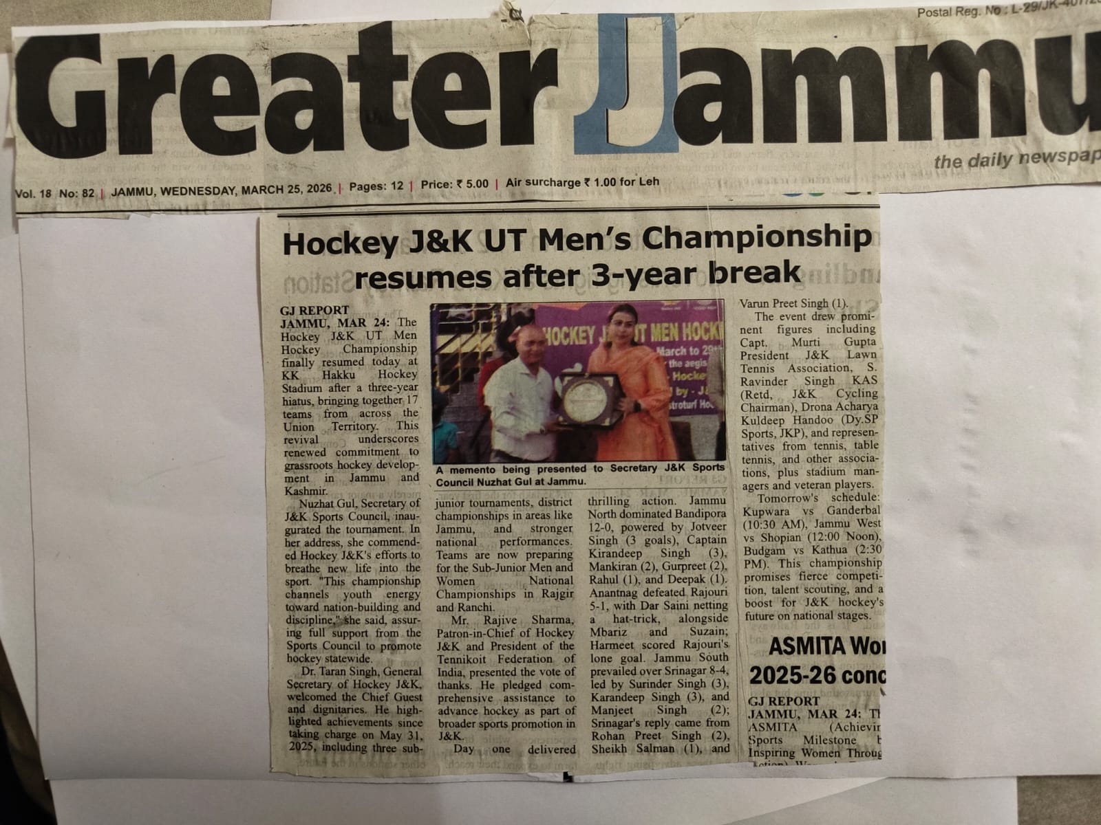 Media coverage for program held in Jammu under Hockey J & K led by Sh. Gurdeep Singh.