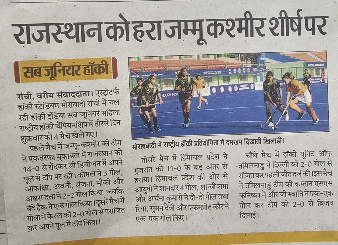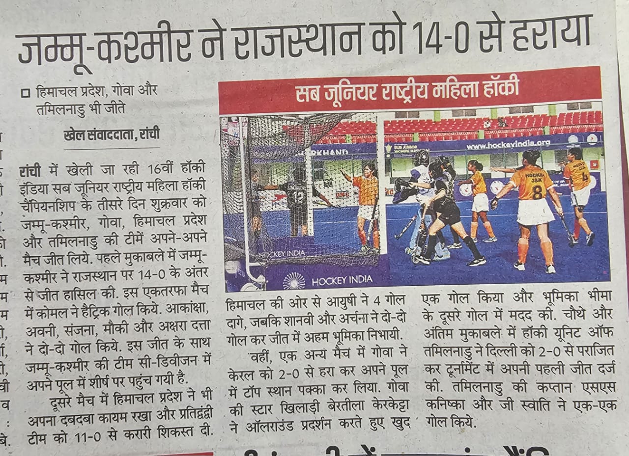 Hockey J&K is going to conduct selection trials of JKUT Sub-Junior Women Hockey Team on 10-06-2025 to 11-06-2025 ,04:00 Pm at KK Hakku Hockey Stadium Jammu for 15th Hockey India Sub-Junior Women National Championship Scheduled to be held at Ranchi Jharkhand w.e.f 03-07-2025 to 14-07-2025 . The Coaching Camp will be organized w.e.f. 12-06-2025 . Interested players should report on time at the venue along with below mentioned documents.