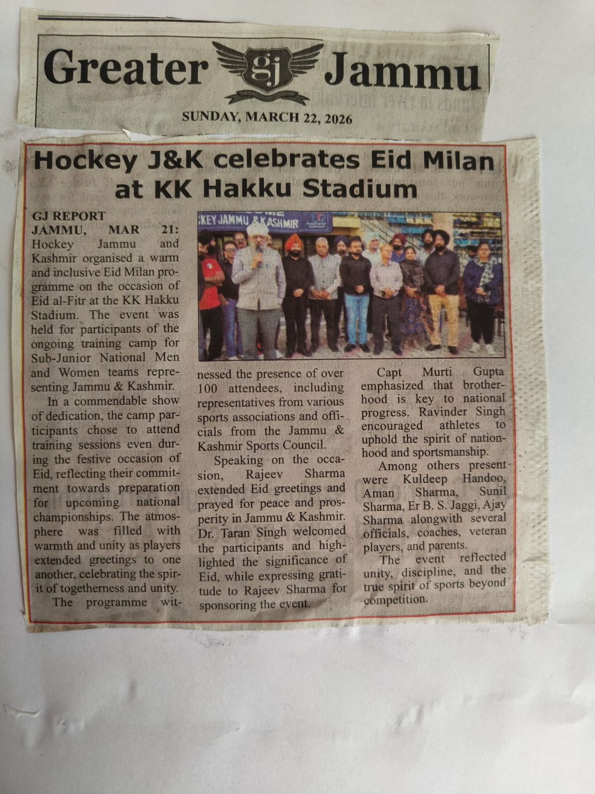 Hockey J&K organizes Eid Milan with players at Hakku Stadium.