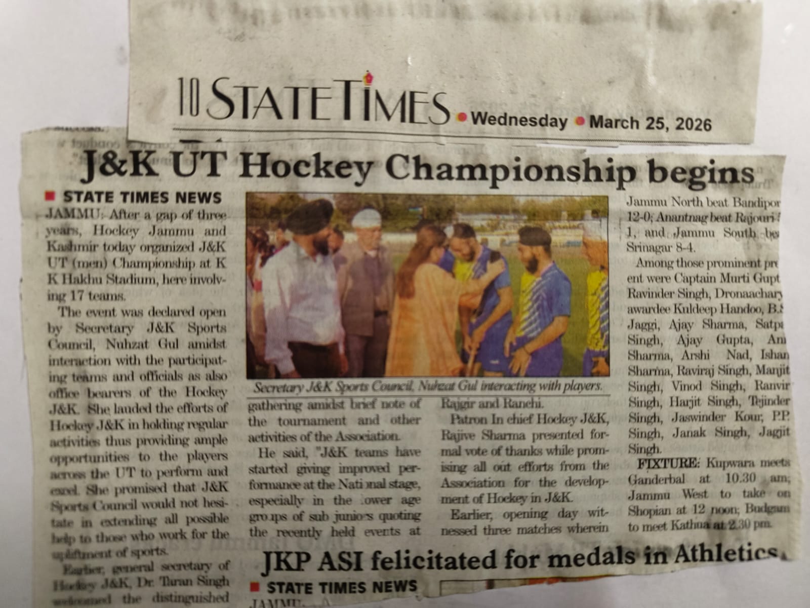 Hockey J&K UT Men Championship 2026 W.E.F. 24-29 MARCH 2026 under the aegis of Hockey India.